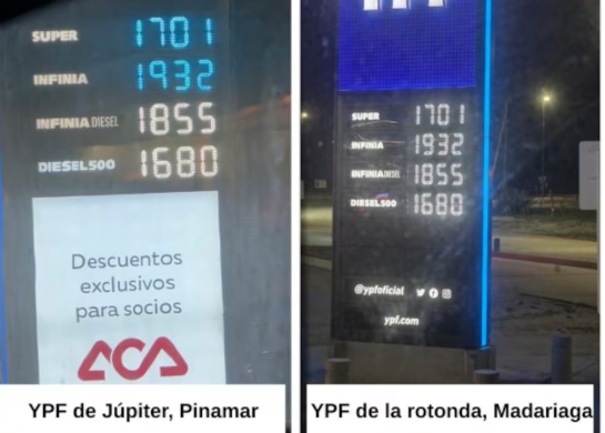Desde General Madariaga describieron que fueron las propias autoridades locales quienes constataron que la estación de servicio YPF ubicada en Pinamar y la estación YPF de la rotonda que limita los partidos, pero que pertenece a Madariaga, exhiben el mismo cuadro tarifario de precios.