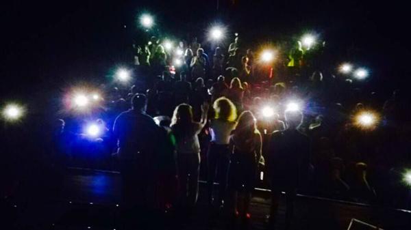 Desconcierto arriba y abajo de la tablas. Los actores se miraron unos a otros; o se buscaron, más bien, en la oscuridad absoluta. Sin embargo no hubo quejas, ni gritos al estilo "¡Devuelvan la plata!". Simplemente, los espectadores -casi como si lo hubieran ensayado- fueron encendiendo sus celulares para así iluminar el escenario, y que Lopilato y compañía puedan concluir la función.